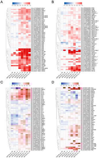 - Erpen, L.; Devi, H.S.; Grosser, J.W.; Dutt, M. Potential use of the DREB/ERF, MYB, NAC and WRKY transcription factors to improve abiotic and biotic stress in transgenic plants. Plant Cell Tissue Organ Cult. 2018, 132, 1–25. [Google Scholar] [CrossRef]