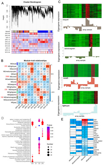 - Langfelder, P.; Horvath, S. WGCNA: An R package for weighted correlation network analysis. BMC Bioinform. 2008, 9, 559. [Google Scholar] [CrossRef]