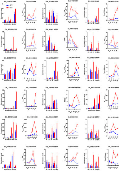 - Peng, Z.; He, S.; Gong, W.; Sun, J.; Pan, Z.; Xu, F.; Lu, Y.; Du, X. Comprehensive analysis of differentially expressed genes and transcriptional regulation induced by salt stress in two contrasting cotton genotypes. BMC Genom. 2014, 15, 760. [Google Scholar] [CrossRef]