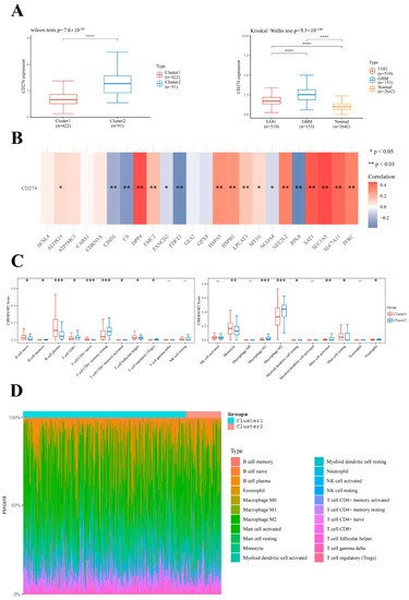 2.3. Association of FRGs with CD274 Expression Level and Immune Cell Infiltration in LGG