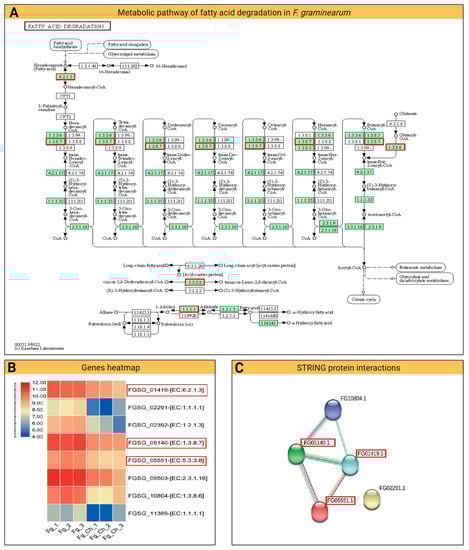 - Guenther, J.C.; Hallen-Adams, H.E.; Bücking, H.; Shachar-Hill, Y.; Trail, F. Triacylglyceride metabolism by Fusarium graminearum during colonization and sexual development on wheat. Mol. Plant-Microbe Interact. 2009, 22, 1492–1503. [Google Scholar] [CrossRef] [PubMed]
