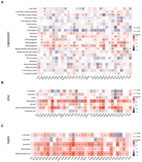 - Li, T.W.; Fu, J.X.; Zeng, Z.X.; Cohen, D.; Li, J.; Chen, Q.M.; Li, B.; Liu, X.S. TIMER2. 0 for analysis of tumor-infiltrating immune cells. Nucleic Acids Res. 2020, 48, W509–W514. [Google Scholar] [CrossRef] [PubMed]
