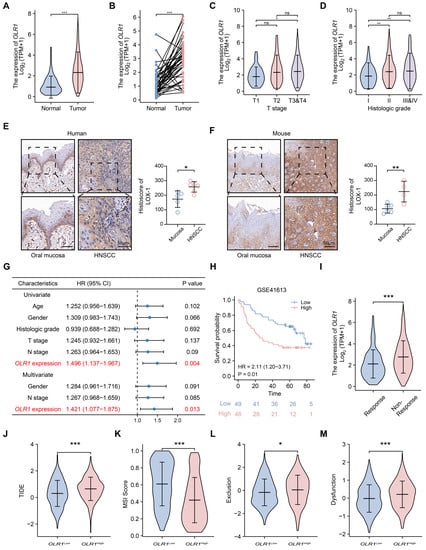 Wu, L.; Liu, Y.; Deng, W.; Wu, T.; Bu, L.; Chen, L. OLR1 Is a Pan-Cancer Prognostic and Immunotherapeutic Predictor Associated with EMT and Cuproptosis in HNSCC. Int. J. Mol. Sci. 2023, 24, 12904. https://doi.org/10.3390/ijms241612904