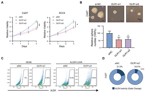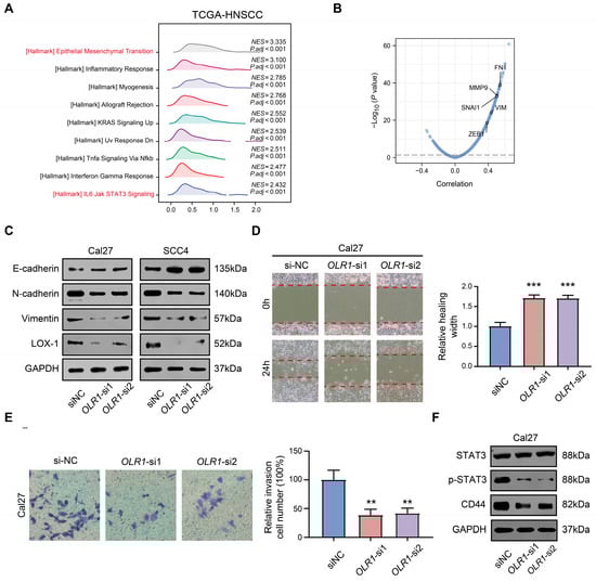 2.5. OLR1 Knockdown Inhibits the EMT Process and Stem Cell Properties via the STAT3 Pathway in HNSCC Cells