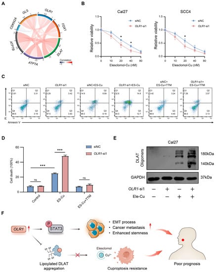 2.6. OLR1 Acts as a Repressor of Cuproptosis in HNSCC Cells