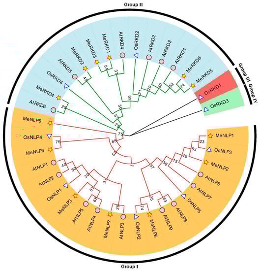 4.11. Subcellular Localization of MeNLP6 and MeRKD5