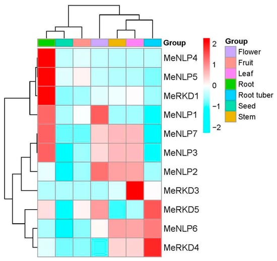 4.6. Transcription Profile of Cassava RWP-RK Genes in Different Tissues