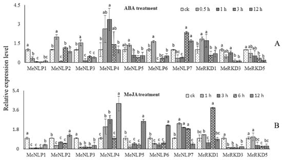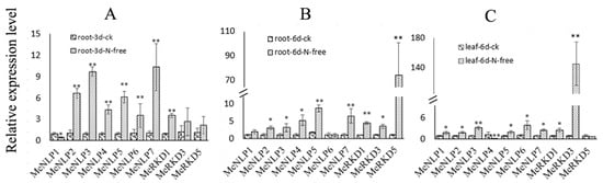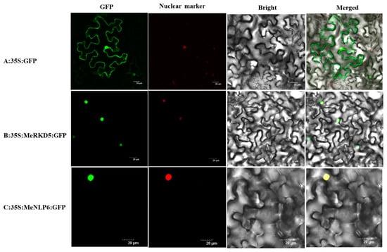 2.10. Subcellular Localization of MeNLP6 and MeRKD5
