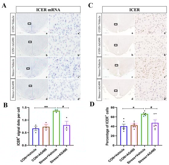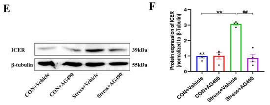 2.4. AG490 Treatment Inhibited the Levels of pSTAT3 and Its Downstream Molecule ICER in Stressed Rats