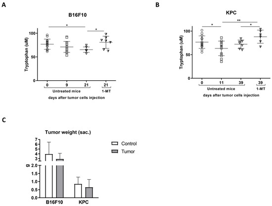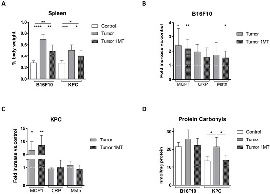 2.3. 1-Methyl-Tryptophan Treatment Modifies Tryptophan Metabolism and Ameliorates Inflammation Signs in Tumor-Bearing Mice