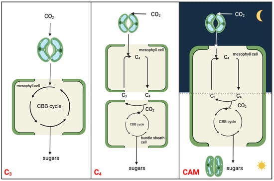 - Schiller, K.; Bräutigam, A. Engineering of Crassulacean Acid Metabolism. Annu. Rev. Plant Biol. 2021, 72, 77–103. [Google Scholar] [CrossRef] [PubMed]