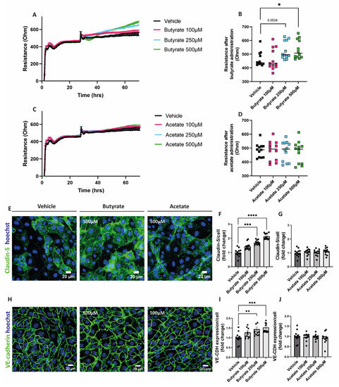 2.2. Butyrate Improves Endothelial Monolayer Integrity by Increasing the Expression of Proteins Involved in Endothelial Junction Formation