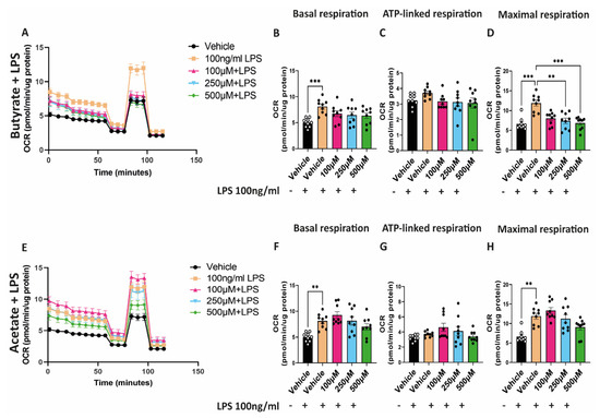 2.5. Butyrate Reduces the Increased Maximal Respiratory Capacity Induced by LPS