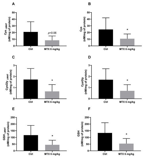 2.1. MTX Affected the Glutathiolomic Profile, Globally Decreasing They Availability
