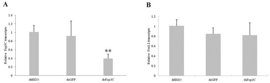 - Livak, K.J.; Schmittgen, T.D. Analysis of relative gene expression data using real-time quantitative PCR and the 2(−ΔΔCT) method. Methods 2001, 25, 402–408. [Google Scholar] [CrossRef] [PubMed]