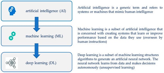 Deep learning is, formally, the more evolved branch of ML that could be considered an implementation of artificial neural networks. Adding more hidden layers, deep learning extends the ANN structure to deep neural networks (DNN) for better generalization, which extracts data features and learns representations with thousands or even millions of parameters []. To date, there are five popular DNN architectures for diabetes: deep multilayer perceptron (a machine learning algorithm used for supervised learning of various binary classifiers), convolutional neural networks, recurrent neural networks, autoencoders, and restricted Boltzmann machines []. Deep learning algorithms can be divided into supervised and unsupervised learning. Compared to supervised learning, unsupervised algorithms do not require predefined supervised inputs for learning [].