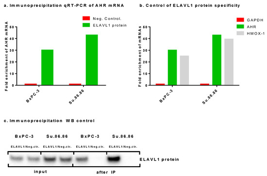 Moreover, AHR silencing increased ELAVL1 mRNA in both cell lines (BxPC3—1.4-fold; Su.86.86—1.2-fold) (Figure 1). The same increase was seen in protein levels (BxPC-3 ELAVL1 protein increased 1.83-fold and Su.86.86 1.2-fold).