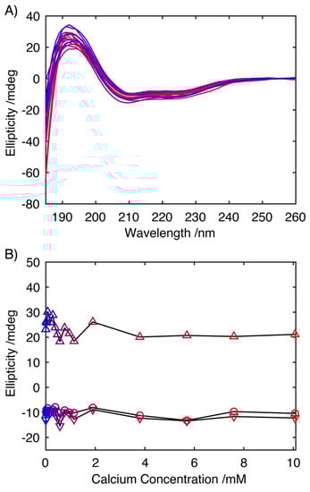 - Miles, A.J.; Ramalli, S.G.; Wallace, B.A. DichroWeb, a website for calculating protein secondary structure from circular dichroism spectroscopic data. Protein Sci. 2022, 31, 37–46. [Google Scholar] [CrossRef]