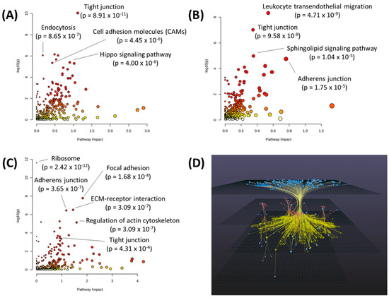 4.3. Univariate Statistics, Pathway Analysis, and Network Analysis of Selected Features