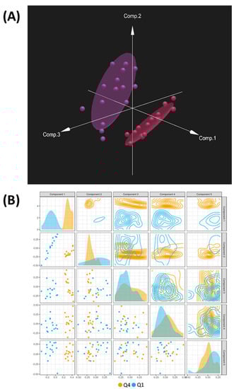 - Singh, A.; Shannon, C.P.; Gautier, B.; Rohart, F.; Vacher, M.; Tebbutt, S.J.; Cao, K.A.L. DIABLO: An integrative approach for identifying key molecular drivers from multi-omics assays. Bioinformatics 2019, 35, 3055–3062. [Google Scholar] [CrossRef]
