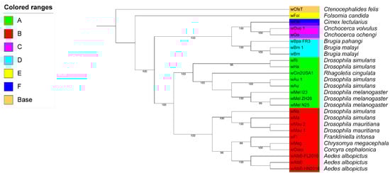- Vancaester, E.; Blaxter, M. Phylogenomic Analysis of Wolbachia Genomes from the Darwin Tree of Life Biodiversity Genomics Project. PLoS Biol. 2023, 21, e3001972. [Google Scholar] [CrossRef]