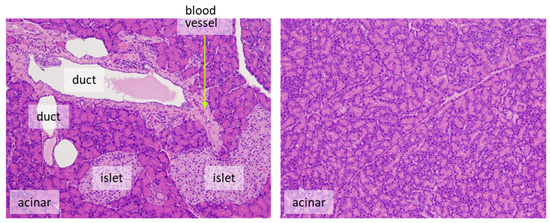Figure 3. Counting should be performed on target cells. For example, the pancreas is composed of several different components, including acinar cells, islet cells, ductal cells, and other mesenchymal cells, such as blood vessels. Their proportion depends on the field of view. Source: authors. Magnification is the same for both pictures.