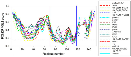 This rather strong conservation of the peculiarities of disorder propensity distribution in the vicinity of the tryptophan of interest suggests that this region is of functional importance not only in EndoT5 and EndoRB49, but in other members of this protein family as well.