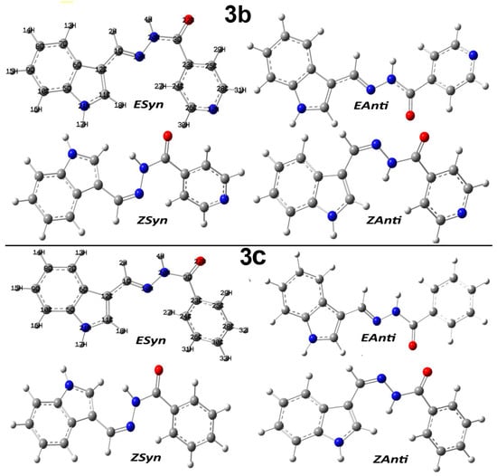 The isomeric forms of the investigated hydrazones 3b and 3c.