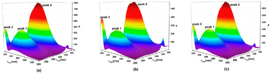 In this study, the wavelength intervals (Δλ = λem − λex) were fixed at 15 to gather fluorescence characteristic information from the Tyr residues, whereas Δλ was fixed at 60 to gather fluorescence characteristic information from the Trp residues [65]. The data were recorded in the wavelength range of 245–315 nm.