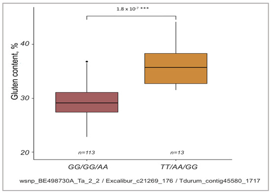 Leonova, I.N.; Kiseleva, A.A.; Berezhnaya, A.A.; Orlovskaya, O.A.; Salina, E.A. Novel Genetic Loci from Triticum timopheevii Associated with Gluten Content Revealed by GWAS in Wheat Breeding Lines. Int. J. Mol. Sci. 2023, 24, 13304. https://doi.org/10.3390/ijms241713304