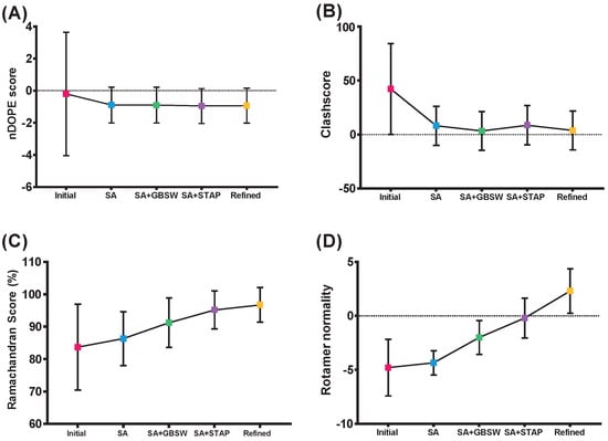 2.4. Contribution of Refinement Components Affecting Structural Quality Improvement