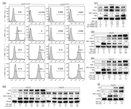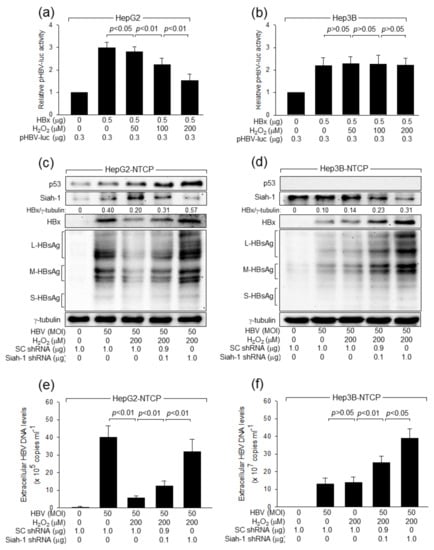 2.5. H2O2 Upregulates Siah-1 Levels through Activation of p53 to Downregulate HBx Levels