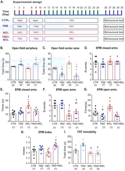 2.1. Temozolomide-Induced Anxiety-like Behavior, Which Melatonin Does Not Prevent