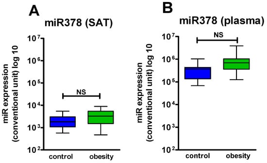 Thus, a feature of our study was the simultaneous assessment of the studied miRs in the SAT and circulation, which allowed us to clarify whether the change in miR levels in the circulation reflects dysregulation of their expression in the AT or systemic changes in obesity. Studies with simultaneous assessment of miRs in the circulation and AT are extremely scarce in the literature. This is supported by a recent meta-analysis [