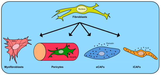 fibroblasts; myofibroblasts; iCAFs; eCAFs; pericytes; extracellular matrix; targeted therapy 1. Introduction