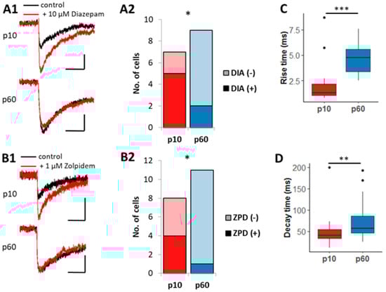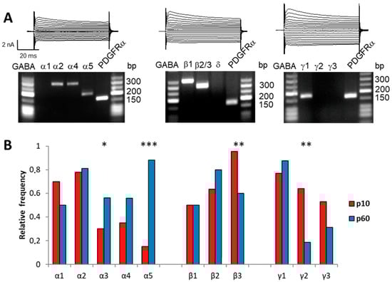 - Passlick, S.; Grauer, M.; Schafer, C.; Jabs, R.; Seifert, G.; Steinhäuser, C. Expression of the gamma2-subunit distinguishes synaptic and extrasynaptic GABA(A) receptors in NG2 cells of the hippocampus. J. Neurosci. 2013, 33, 12030–12040. [Google Scholar] [CrossRef]