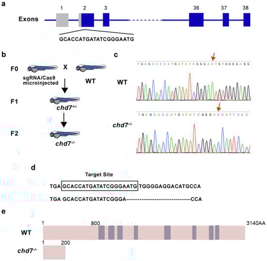 2.2. Construction of chd7 Homozygous Mutant Zebrafish