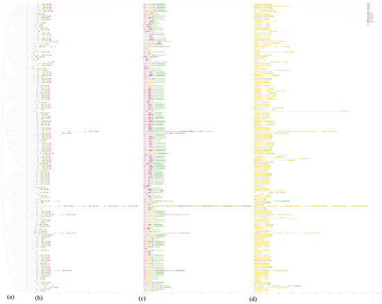 Additionally, it was revealed that WAK genes were composed of more exons based on the predicted gene structure (Figure 2d). GFF annotation results indicated that the relative number of exons varied from 3 to 36 in these WAKs. In addition, 56 WAKs contain introns. These 56 genes are widely present in all groups. The majority of family members contain between 3 and 10 exons, while BoWAK24 consists of 36 exons and CsaWAK3 consists of 25 exons. Most members of the same subfamily tend to be more similar in terms of the structure of their exons and introns as well as their intron phase distribution. As a result, the validity of classifications based on the phylogenetic analysis can be further supported.