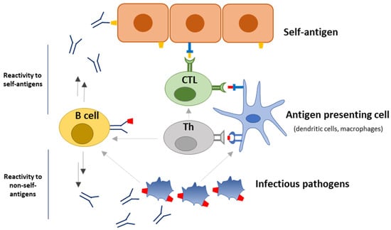 In principle, the immune system is capable of responding to any foreign pathogen-associated molecule while remaining tolerant to self-tissues. However, in some cases the immune system fails to differentiate between infectious non-self-antigens and self-tissue, resulting in the generation of immune responses to self-components, also referred to as autoimmunity [2,3].