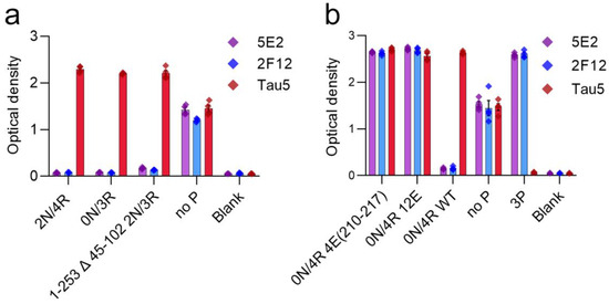 2.2. 5E2 and 2F12 Immunoreactivity Is Dependent on the Phosphorylation State Adjacent to the Core Epitope and Enhanced by Tau Pathogenic Mutants in HEK293T Cells