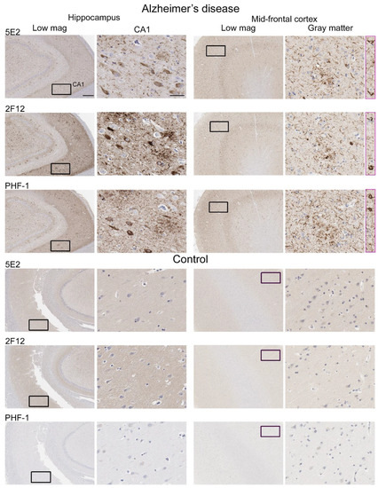 4.10. Semiquantification of Tau Neuropathology Immunostaining with PHF-1, 5E2, and 2F12 in Human Brain Tissue