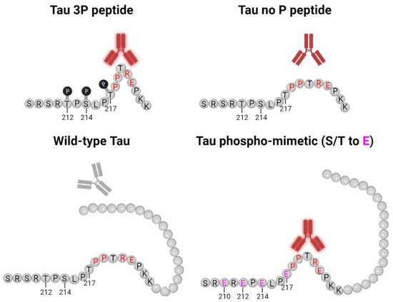 - Porzig, R.; Singer, D.; Hoffmann, R. Epitope Mapping of MAbs AT8 and Tau5 Directed against Hyperphosphorylated Regions of the Human Tau Protein. Biochem. Biophys. Res. Commun. 2007, 358, 644–649. [Google Scholar] [CrossRef]