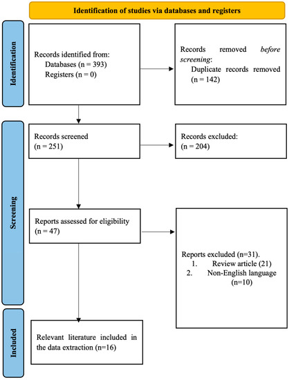 - Moher, D.; Liberati, A.; Tetzlaff, J.; Altman, D.G.; the PRISMA Group. Preferred reporting items for systematic reviews and meta-analyses: The PRISMA statement. Ann. Intern. Med. 2009, 151, 264–269. [Google Scholar]