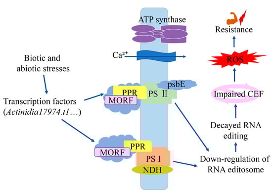 - Xiong, Y.; Fang, J.; Jiang, X.; Wang, T.; Liu, K.; Peng, H.; Zhang, X.; Zhang, A. Genome-Wide Analysis of Multiple Organellar RNA Editing Factor (MORF) Family in Kiwifruit (Actinidia chinensis) Reveals Its Roles in Chloroplast RNA Editing and Pathogens Stress. Plants 2022, 11, 146. [Google Scholar] [CrossRef] [PubMed]
