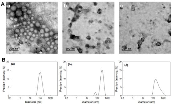 The effect of hydrogen peroxide on the physicochemical changes of the nanoparticles. (A) Morphological changes of the ChitoPEGthDOX nanoparticles. H2O2 concentration: (a) 0 mM; (b) 1.0 mM; (c) 10 mM. (B) Changes in the particle size of the ChitoPEGthDOX nanoparticles. H2O2 concentration: (a) 0 mM; (b) 1.0 mM; (c) 10 mM. ChitoPEGthDOX nanoparticles (1 mg/mL in PBS) were incubated with H2O2 for 3 h at 37 °C, and then the particle sizes and morphology were evaluated.