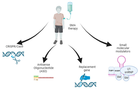 Spinal muscular atrophy (SMA) is a rare autosomal recessive neuromuscular disease that is characterized by progressive muscle atrophy (degeneration), including skeletal muscles in charge of the ability to move. SMA is caused by defects in the SMN1 gene (Survival of Motor Neuron 1) which encodes a protein crucial for the survival and functionality of neuron cells called motor neurons. Decreased level of functioning SMN protein leads to progressive degeneration of alpha-motor neurons performing muscular motility. Over the past decade, many strategies directed for SMN-level-restoration emerged, such as gene replacement therapy (GRT), CRISPR/Cas9-based gene editing, usage of antisense oligonucleotides and small-molecule modulators, and all have been showing their perspectives in SMA therapy. In this review, modern SMA therapy strategies are described, making it a valuable resource for researchers, clinicians and everyone interested in the progress of therapy of this serious disorder.