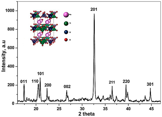 Sodium titanosilicate powders Na2TiSiO5 have been obtained using the modified sol–gel method, starting from NaOH (5 M), titanium tetraisopropoxide Ti(O3C3H7)4 (TEOS), and tetraethylorthosilicate Si(OCH2CH3)4 (Merck KGaA, Darmstadt, Germany; reagents with purities > 99%). The precursor has been obtained from starting materials mixed in ideal cation stoichiometry for Na2TiSiO5. After stirring at 80 °C and drying at 110 °C, the precursor has been heat-treated between 500–900 °C for two hours.