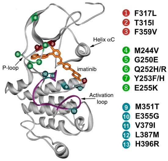 - Patel, A.B.; O’Hare, T.; Deininger, M.W. Mechanisms of Resistance to ABL Kinase Inhibition in Chronic Myeloid Leukemia and the Development of Next Generation ABL Kinase Inhibitors. Hematol. Oncol. Clin. N. Am. 2017, 31, 589–612. [Google Scholar] [CrossRef] [PubMed]