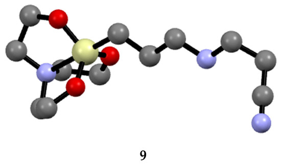 3.3.2. 3-[3-(2,8,9-Trioxa-5-aza-1-silabicyclo[3.3.3]undec-1-yl)-propyl]amino)propanenitrile (9)