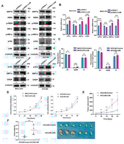 2.2. Intracellular Retention of LHB Leads to Morphological Changes of ER and Affects the Cell Cycle of HCC